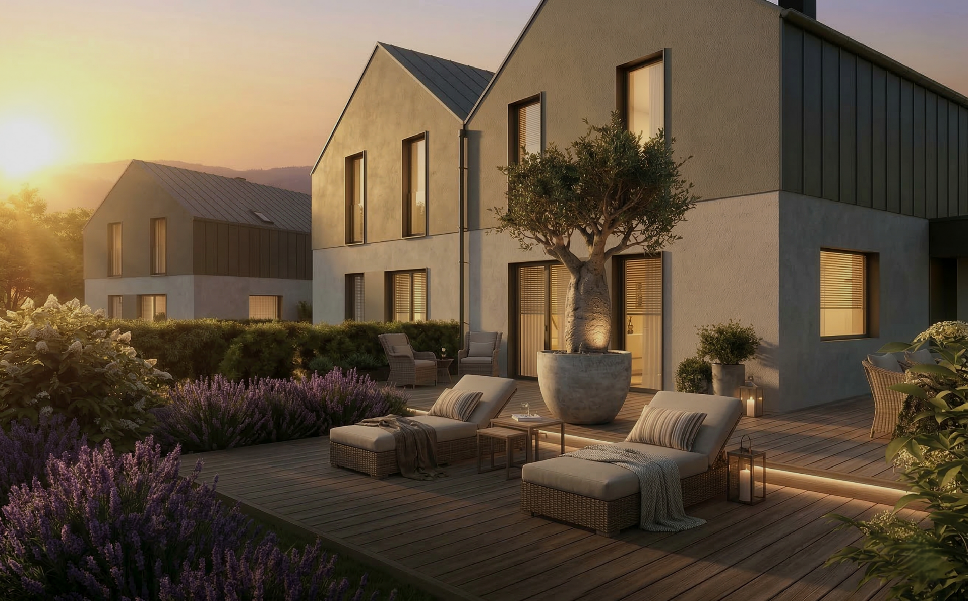Osiedle Wzgórze Millennium to przykład nowoczesnej architektury inspirowanej europejskimi trendami, szczególnie z nurtów skandynawskiego, francuskiego i niemieckiego. Architekci czerpali z kanonów luksusowego modernizmu, tworząc eleganckie i funkcjonalne przestrzenie. Budynki zostały starannie wkomponowane w zielone otoczenie, co nadaje inwestycji kameralny charakter, mimo jej nowoczesnego stylu. Duże przeszklenia oraz nowoczesne stalowe zadaszenia podkreślają funkcjonalność i estetykę elewacji, jednocześnie zapewniając wnętrzom naturalne światło.